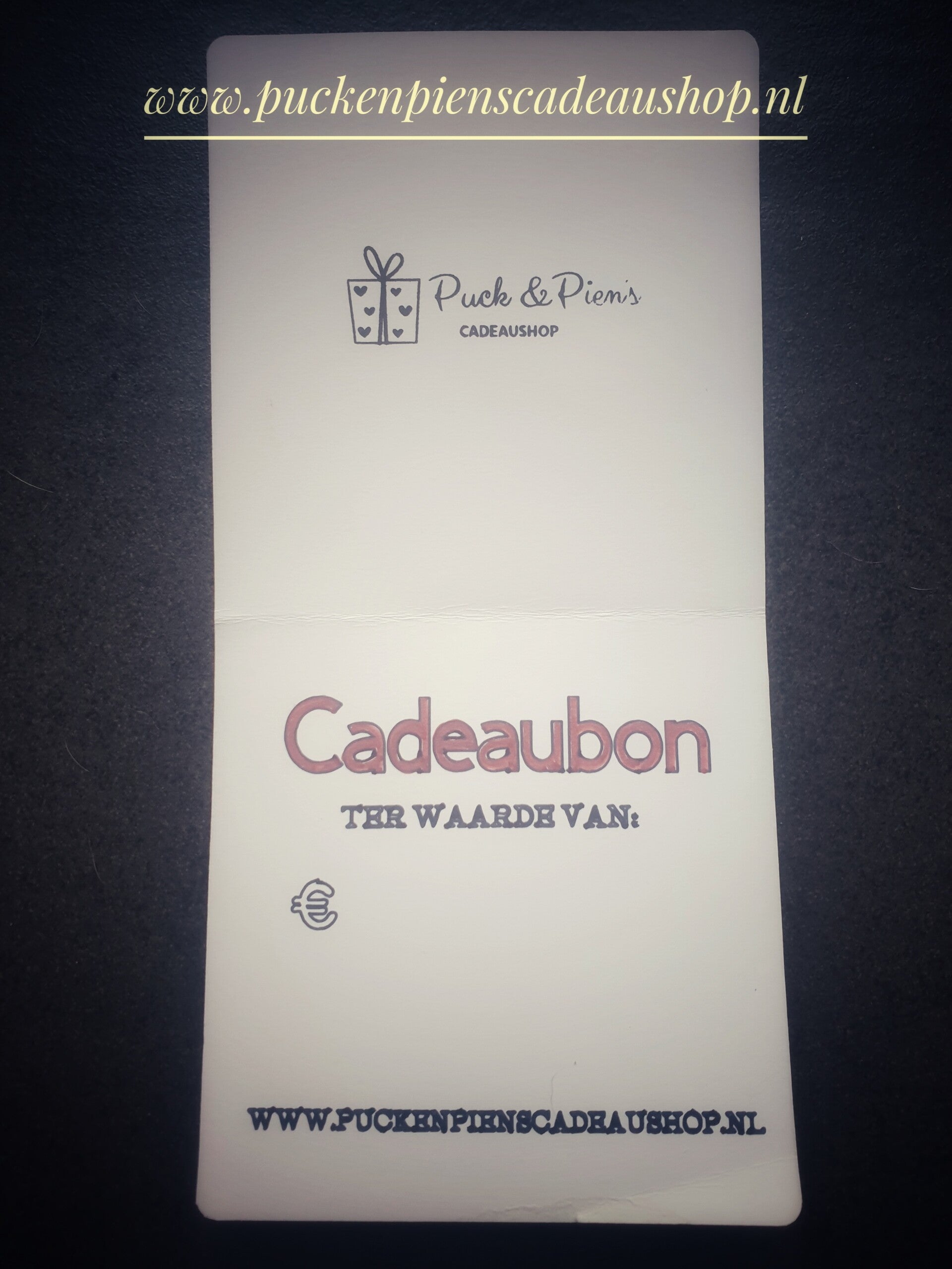 En als kers op de taart kun je ook je eigen unieke touch toevoegen. Maak iemand blij met de cadeaubon van Puck en Pien's cadeaushop en geef een geschenk dat echt bijzonder is!